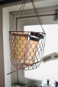 愛用のエアロプレスは、辻和金網の銅のつりかごに収納してます。
