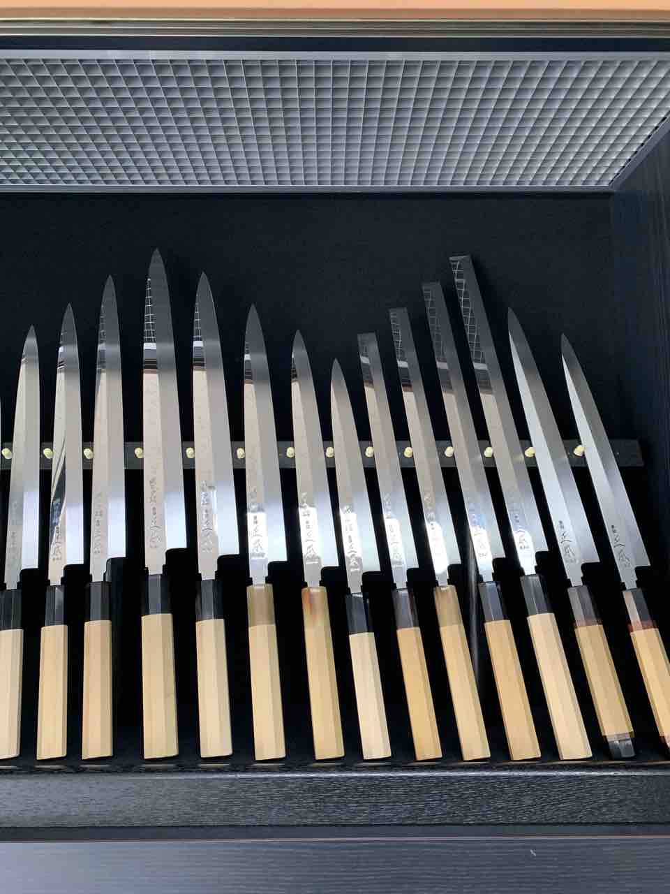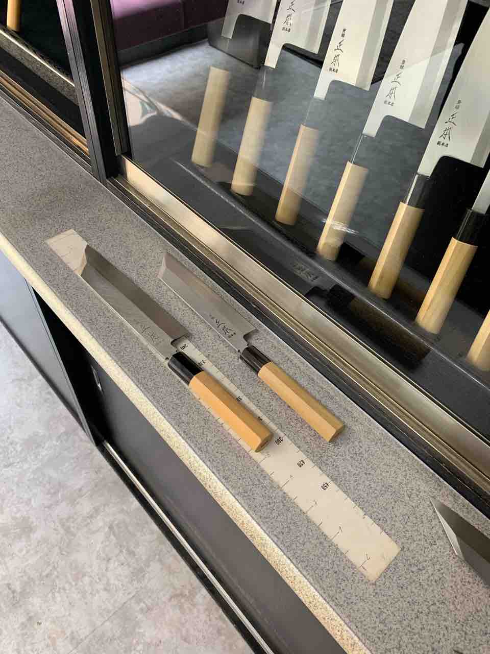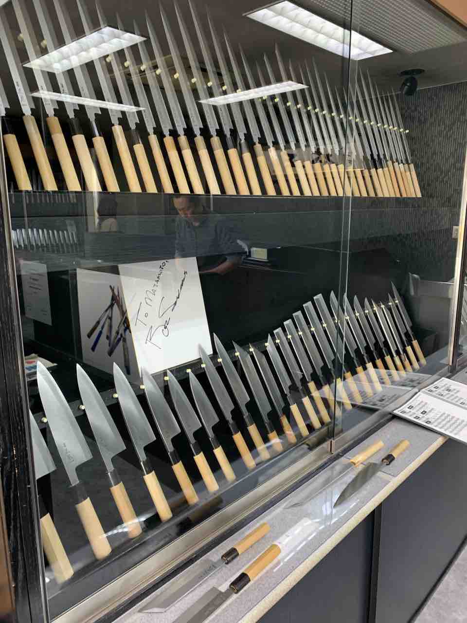 店の壁面には、包丁がずらりと並んでおり、圧巻でした。