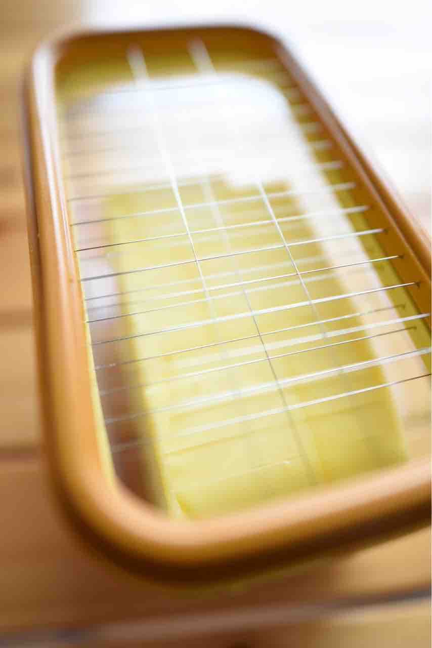 バター問題というのは、固くてベトベトしたバターを欲しい重量でスムーズにカットする方法で納得できるものがない、という問題です。