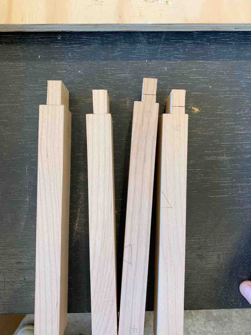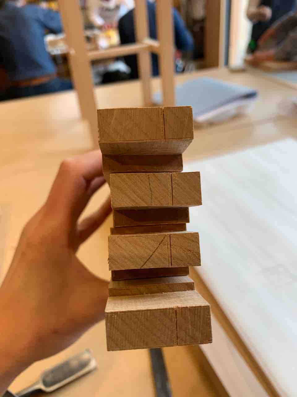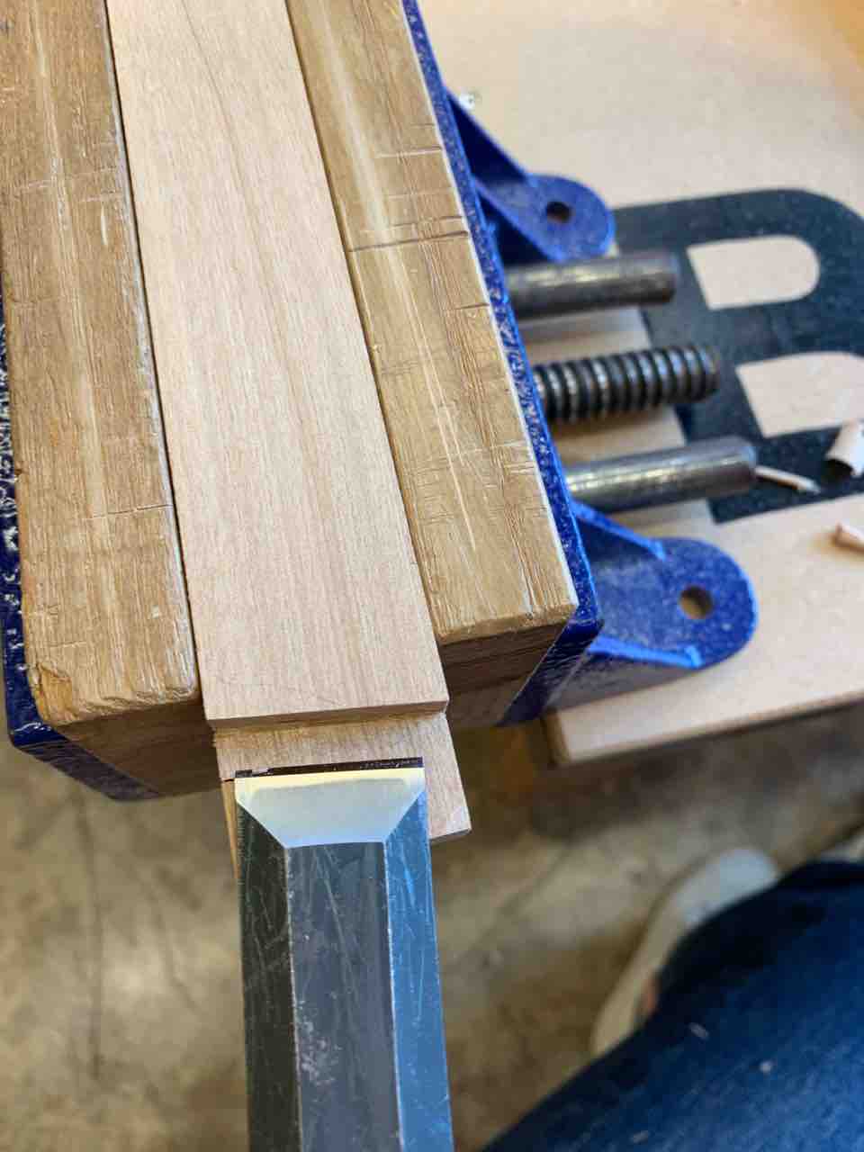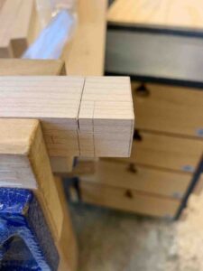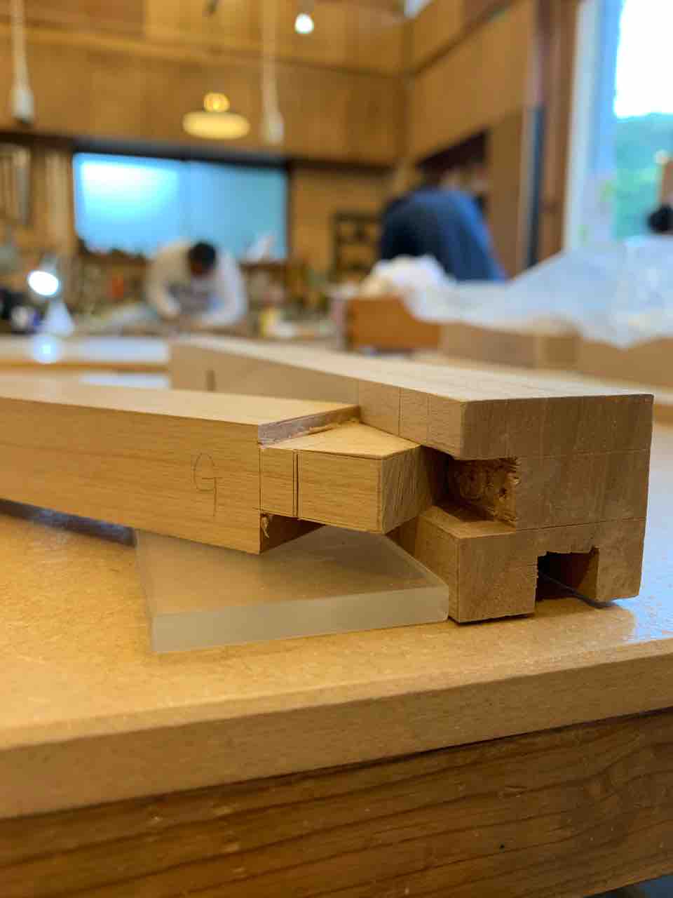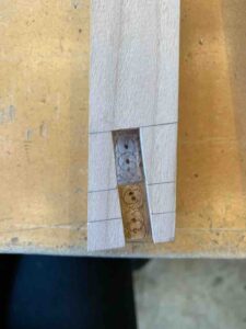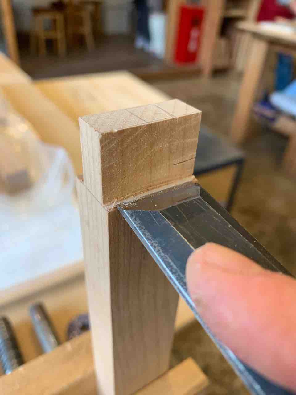 今回は、幕板(座面を下から支える横木)のホゾ加工をしました。