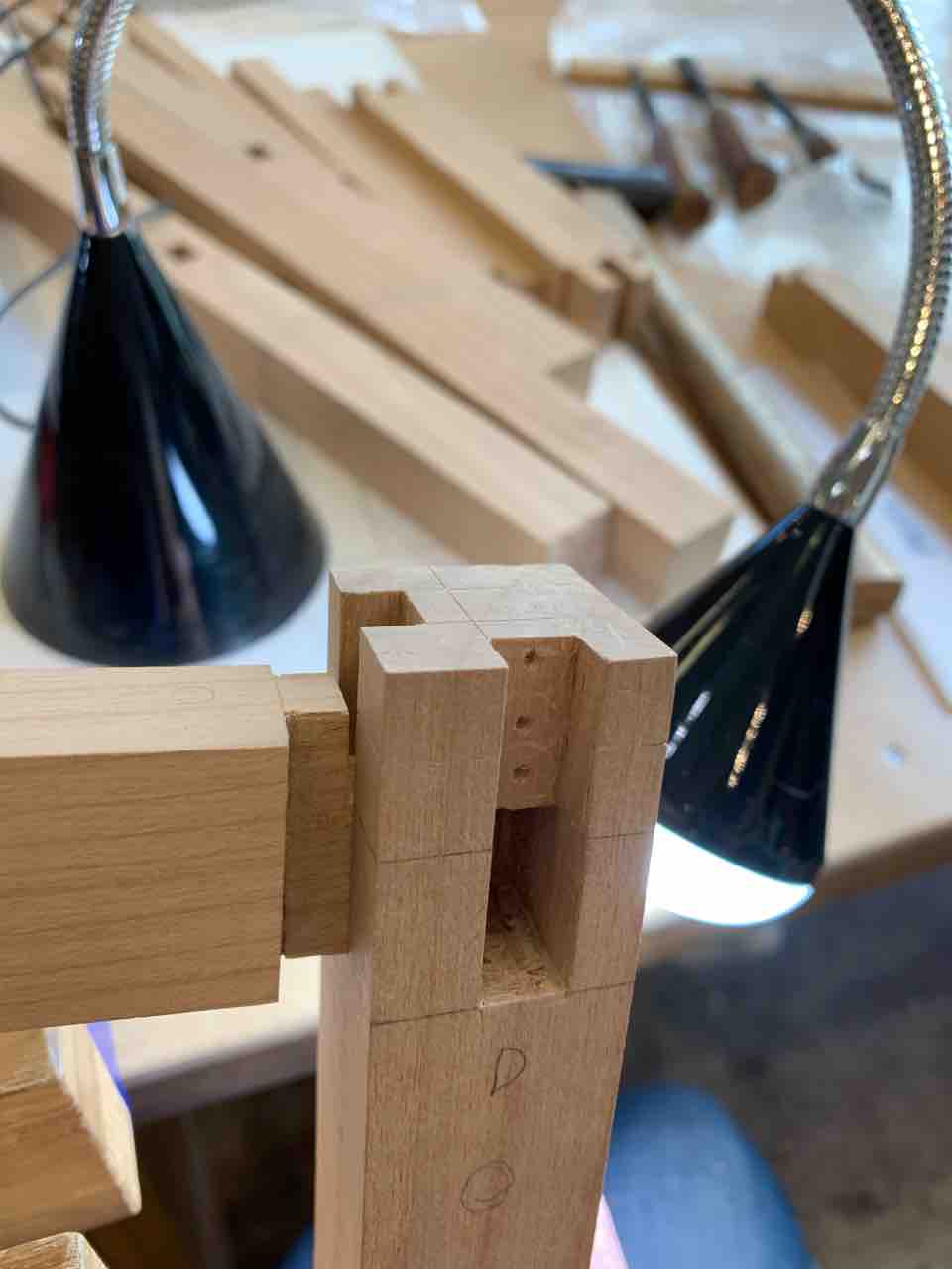 次回は、側貫(がわぬき、前脚と後脚をつなぐ補強材)のホゾ組みを仕上げる予定です。