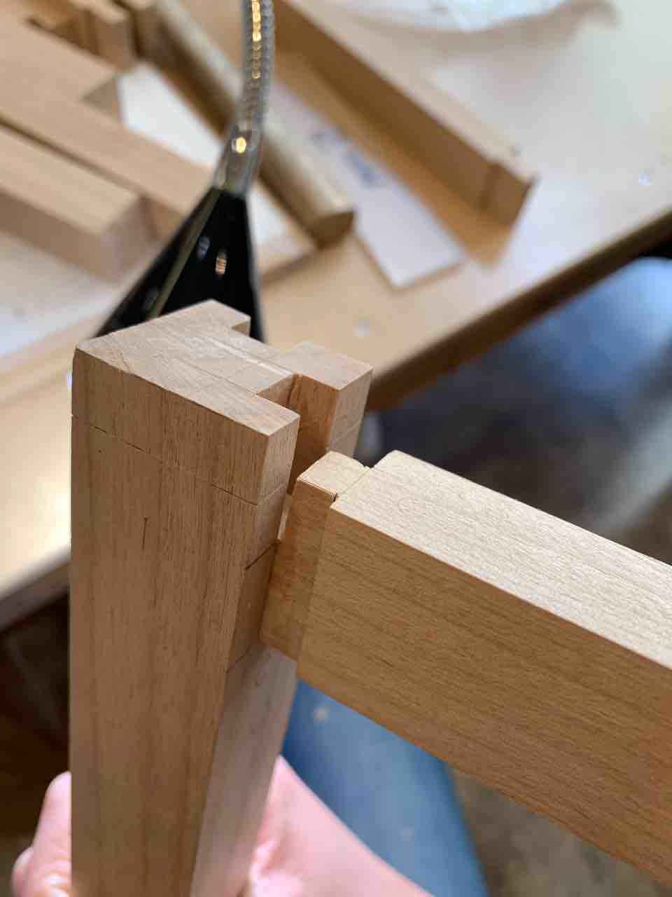 幕板(座面を下から支える横木)と脚のホゾの調整をしました。