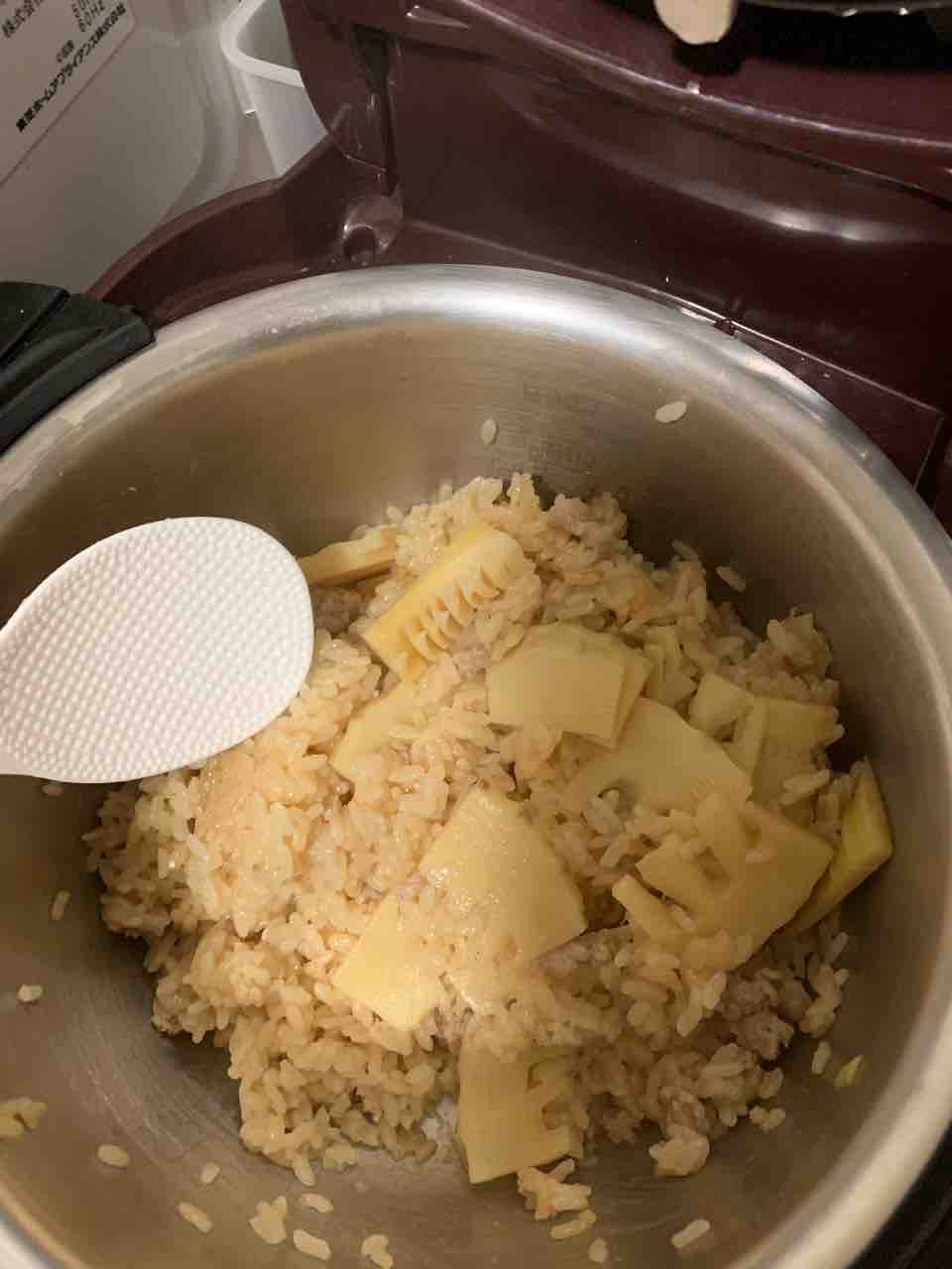 筍御飯も作りました。出汁と鶏ひき肉は前回多めに作って残りを冷凍しておいたのでそれを使いました。