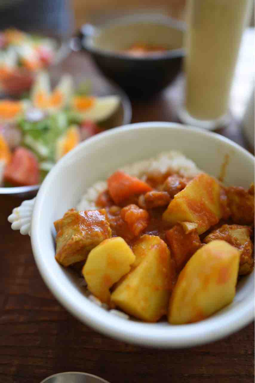 玉ねぎ、にんじん、じゃがいも、鶏肉 でチキンカレーも作りました。