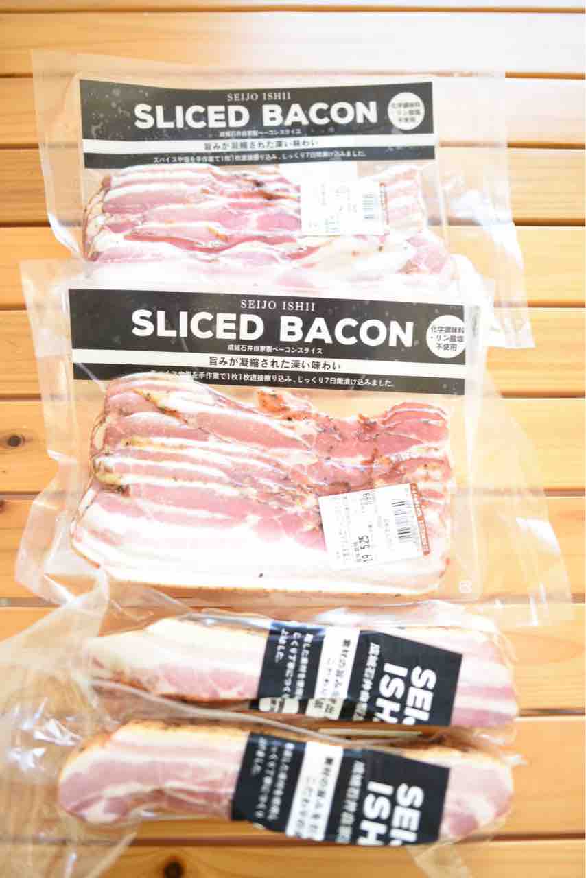 化学調味料不使用のベーコンブロックとベーコンスライス、初めて見つけました。