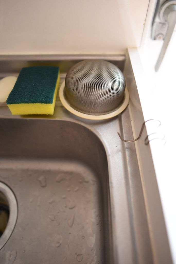 愛用のたわし、S字フックに刺して収納してます。