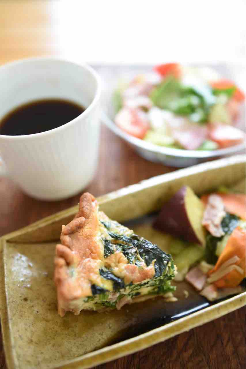 先日記事にもしましたが、ほうれん草、ブロックハム でキッシュロレーヌを作りました。先週、低糖質マフィンを作った時の生クリームの余りや牛乳を使いました。