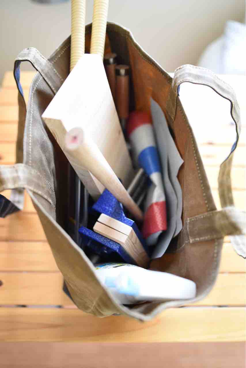 木工教室オリジナルの蝋引きキャンパストートに入れたらスッキリまとまりました。