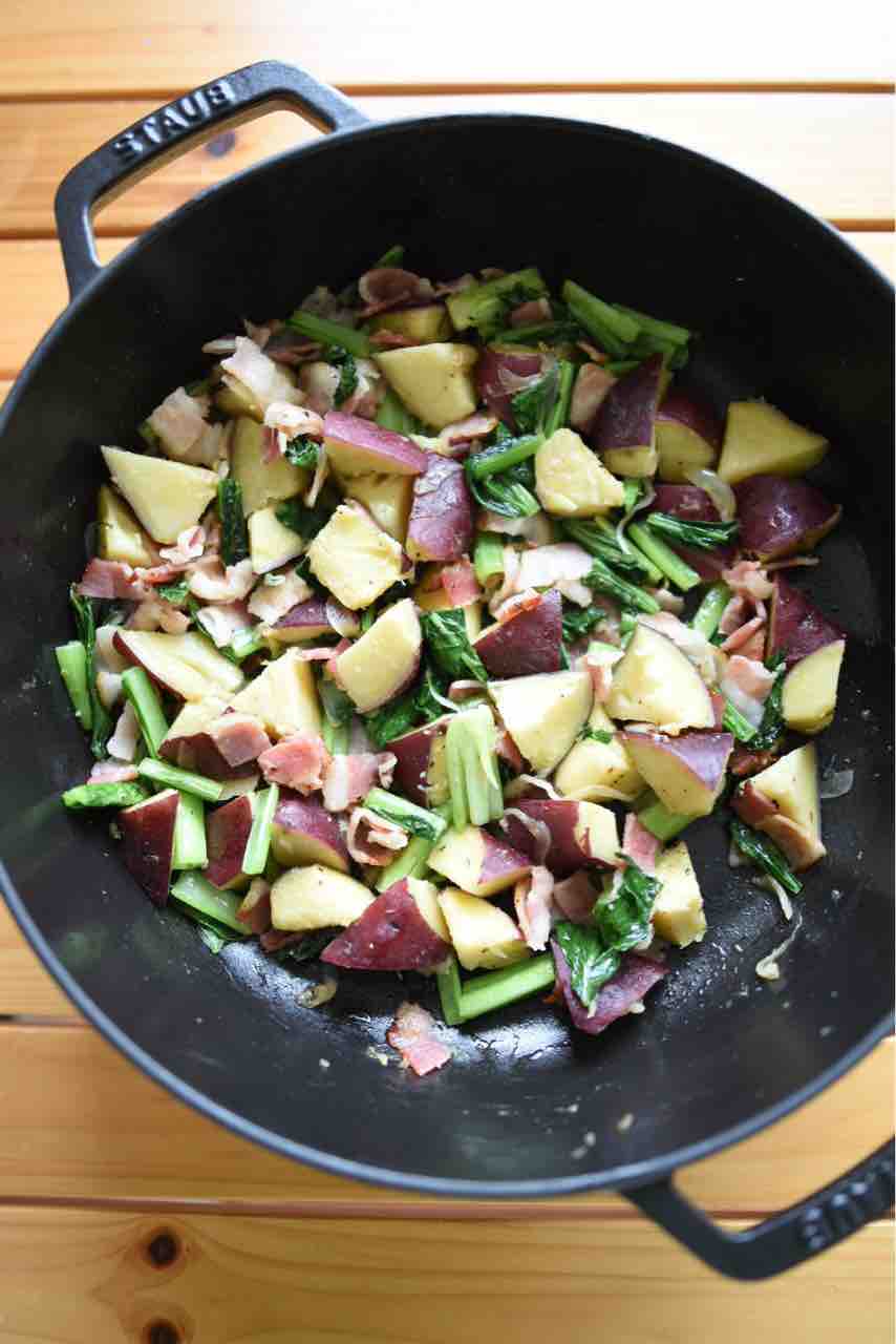 ベーコン、玉ねぎ、さつまいも、小松菜 で炒め物も作りました。さつまいもは電気IH圧力なべであらかじめ蒸しました。