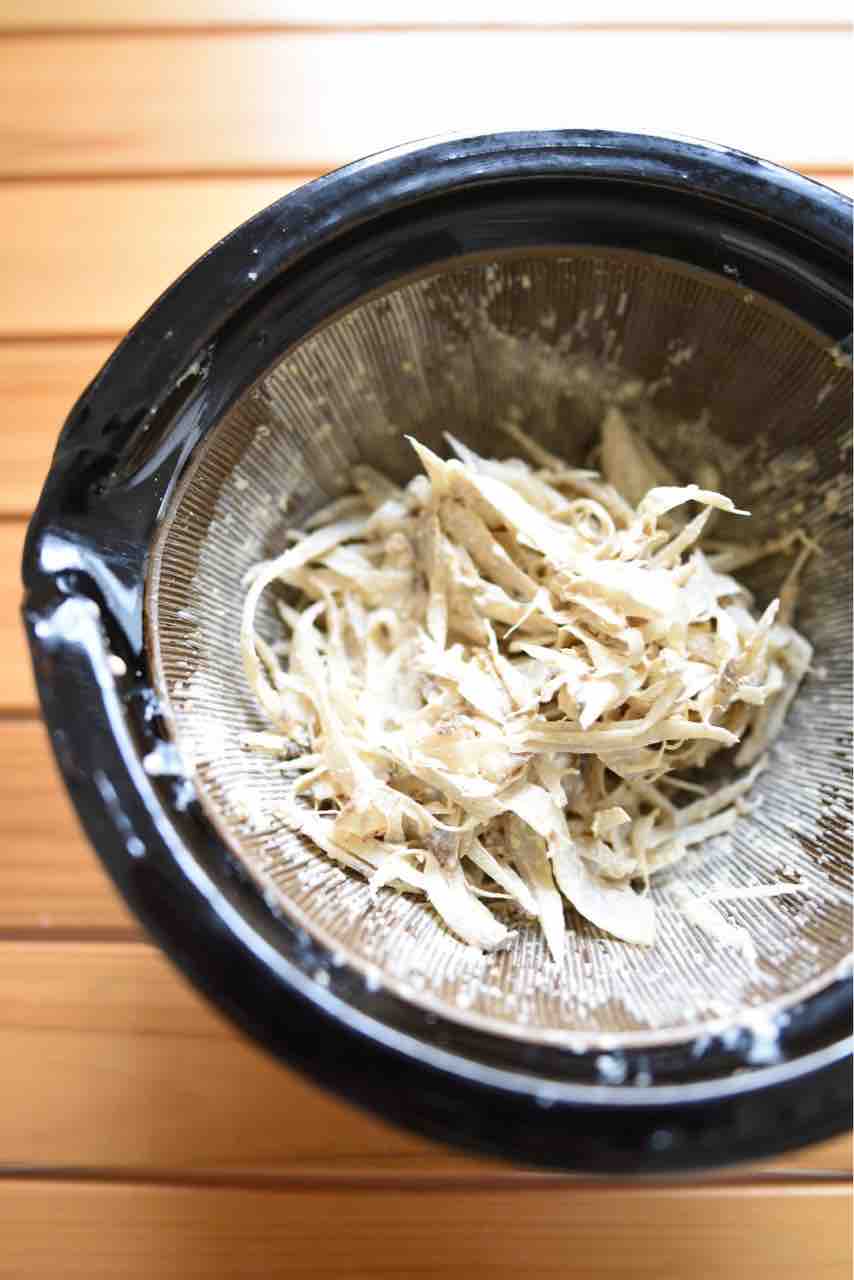ごぼうはささがきにして、胡麻酢マヨネーズ和えにしました。