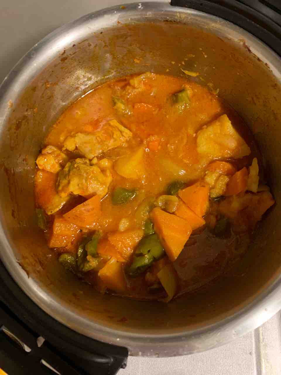 鶏もも肉、たまねぎ、にんじん、生姜、有機トマトピューレ、じゃがいも、ピーマン でチキンカレーも作りました。