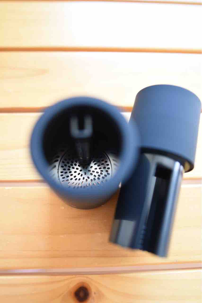 パカっと開けると、おなじみのあのグレーターと同じ刃が見えました。スパイスを入れ、右側の棒で押し回しながらガリガリ挽く構造になってます。丸洗いできます。
