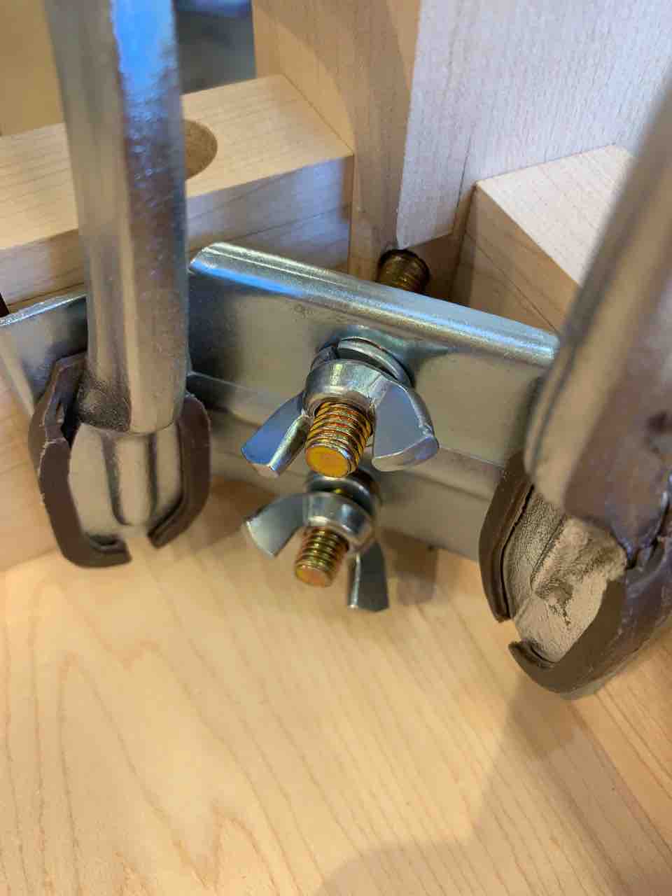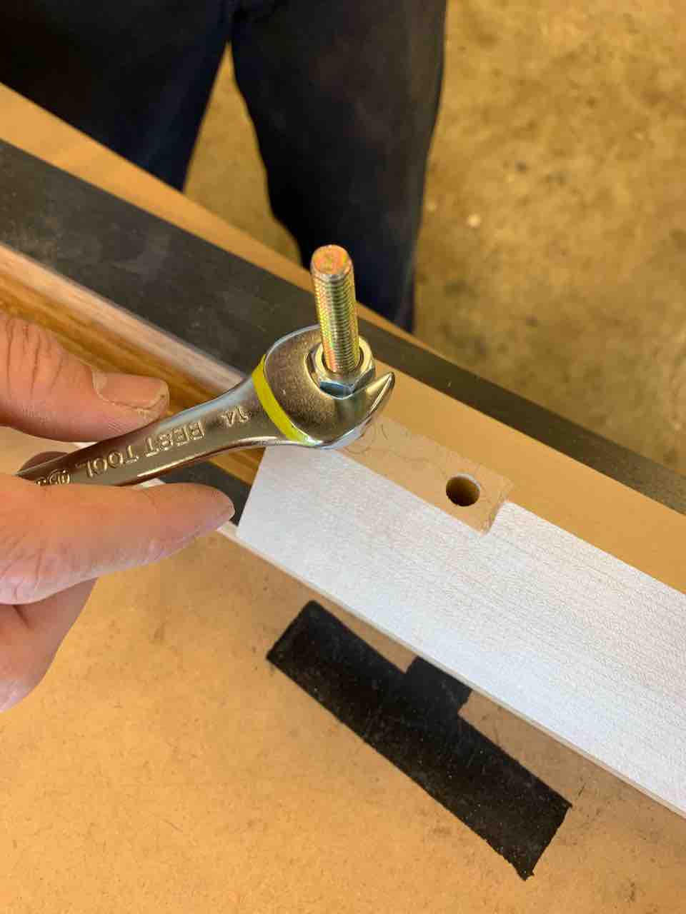 これを幕板に仮止めした金具に、蝶ナットで締結してみて、干渉などがないことを確認しました。