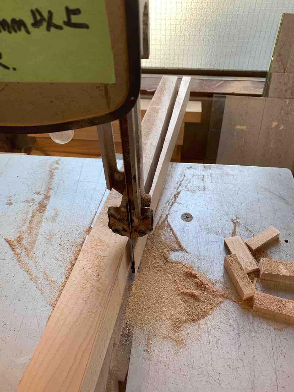 次に、脚の形の加工をしました。ざっくり言うと、脚は付け根から先細りするので斜めにカットする必要があります。