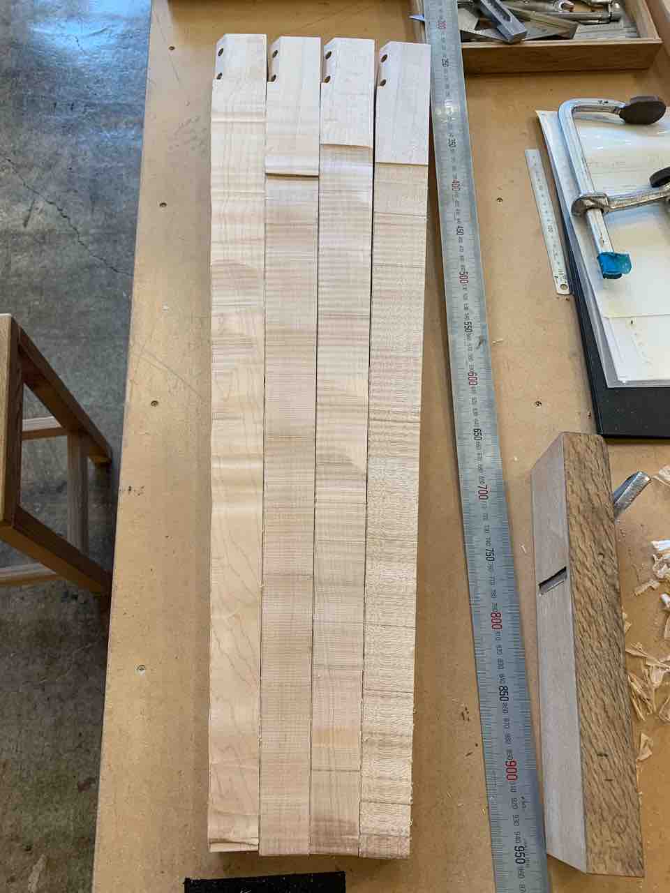 次回は、脚を鉋で仕上げ、幕板に脚金具を取り付けて仮組みする予定です。