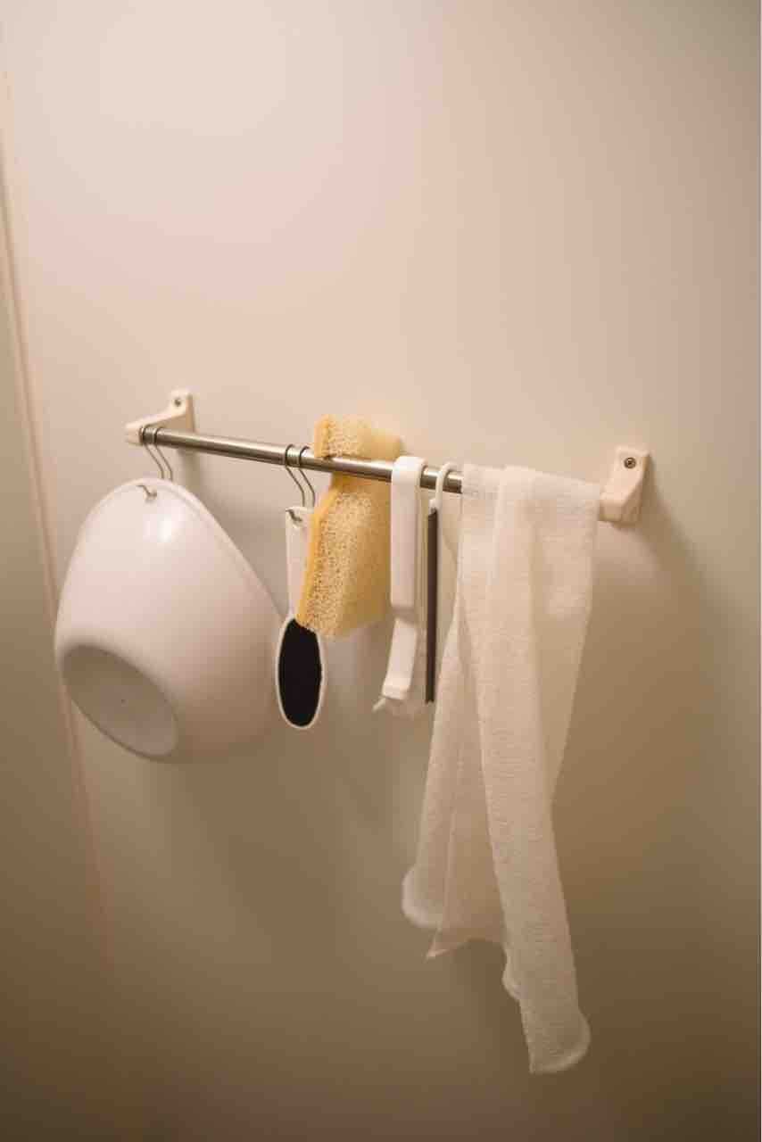 新居のお風呂には、ボトルが置ける台のようなものがありません。バーのみです。
