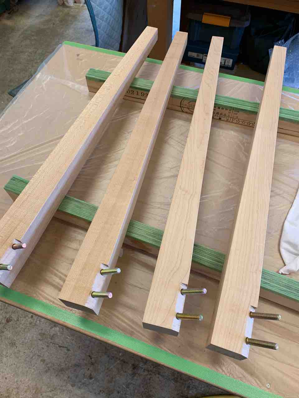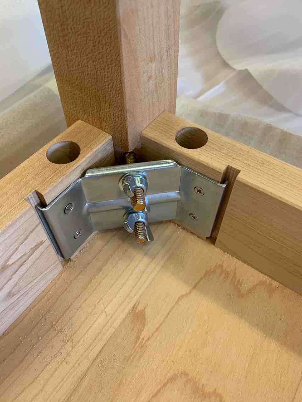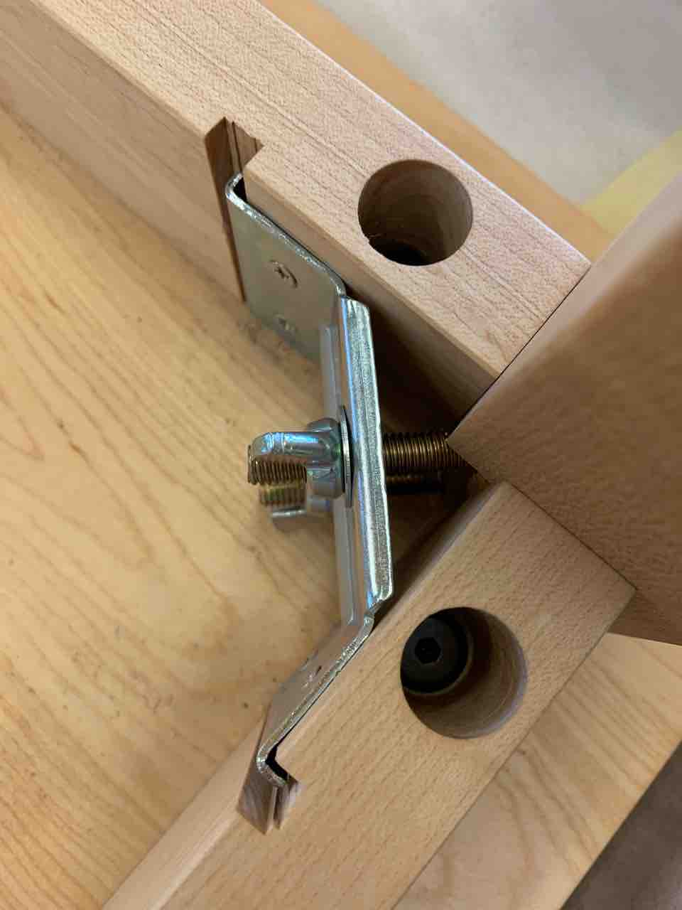脚の金具を噛ませるために、幕板に溝を入れていたのですが、金具の角度のばらつきなどがあり、溝にはまらなかったのでスライドソーをもう一度使い、溝を太くしました。