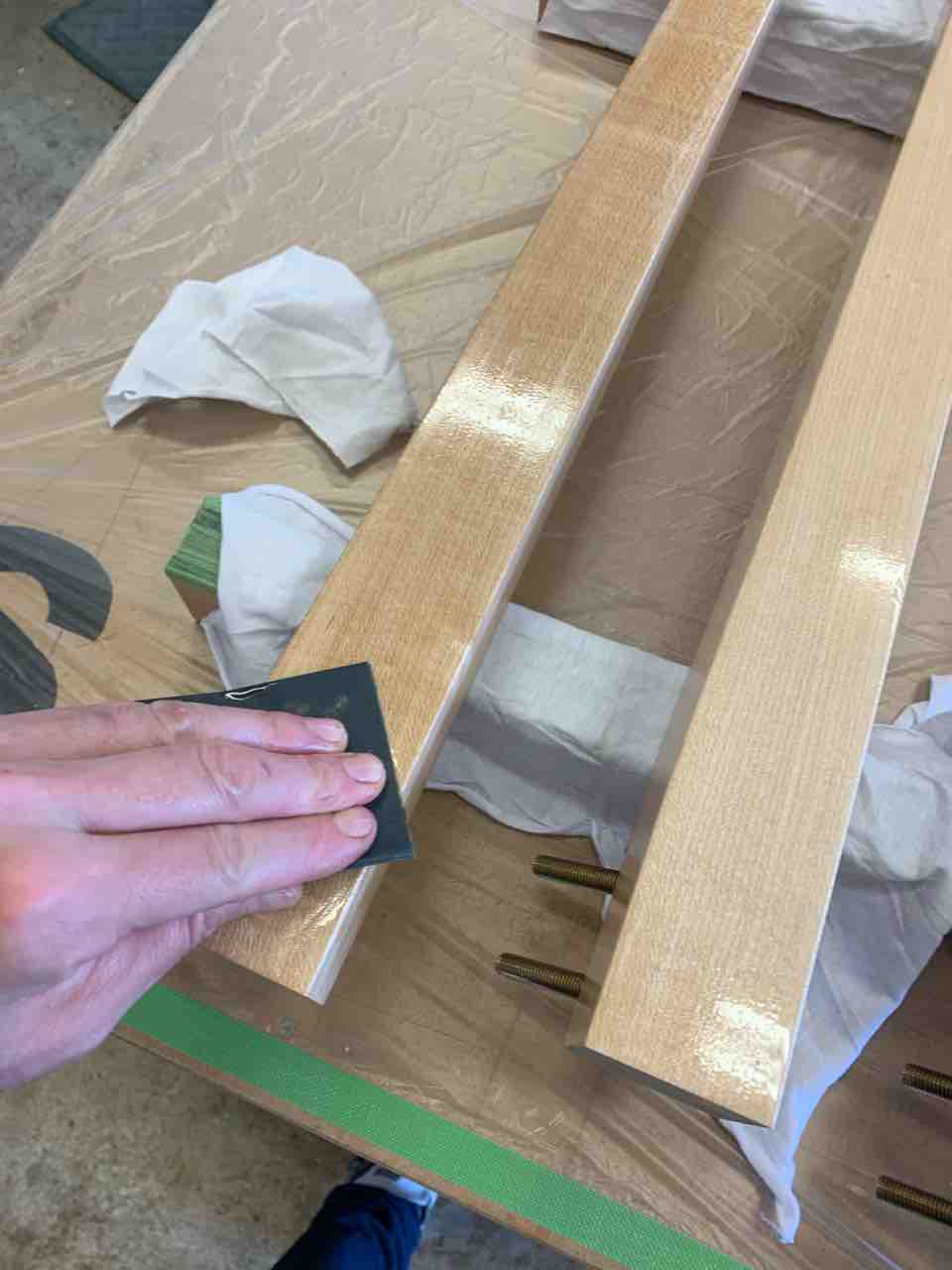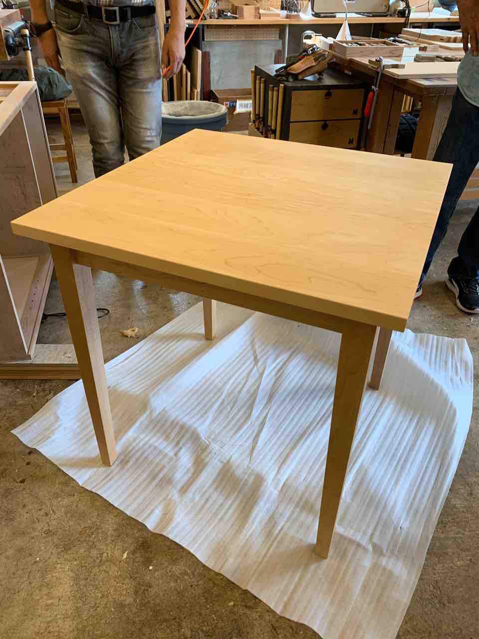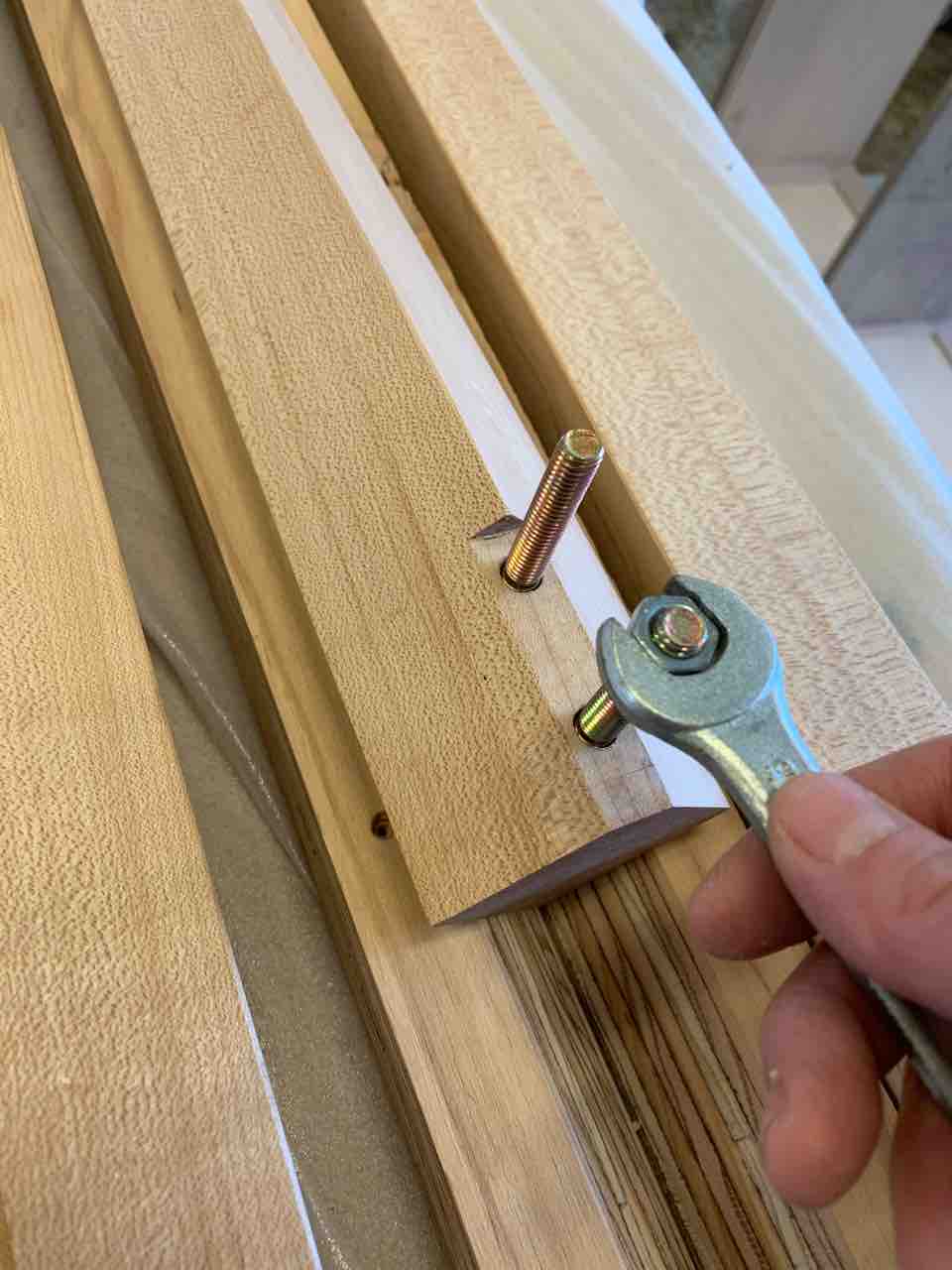 脚の金具を噛ませるために、幕板に溝を入れていたのですが、金具の角度のばらつきなどがあり、溝にはまらなかったのでスライドソーをもう一度使い、溝を太くしました。