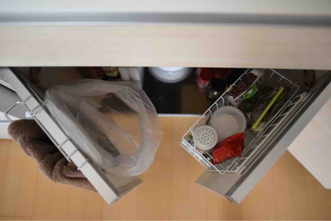 同様に、シンク前に立ち、扉を開けるとこういった感じに見えて、必要なものがサッと取れるようになっていてすごく使いやすいです。