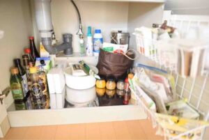 新居のキッチンの排水口は、以前よりもコンパクトになっていて、ゴミカゴとトラップが一体化したものがはまっています。