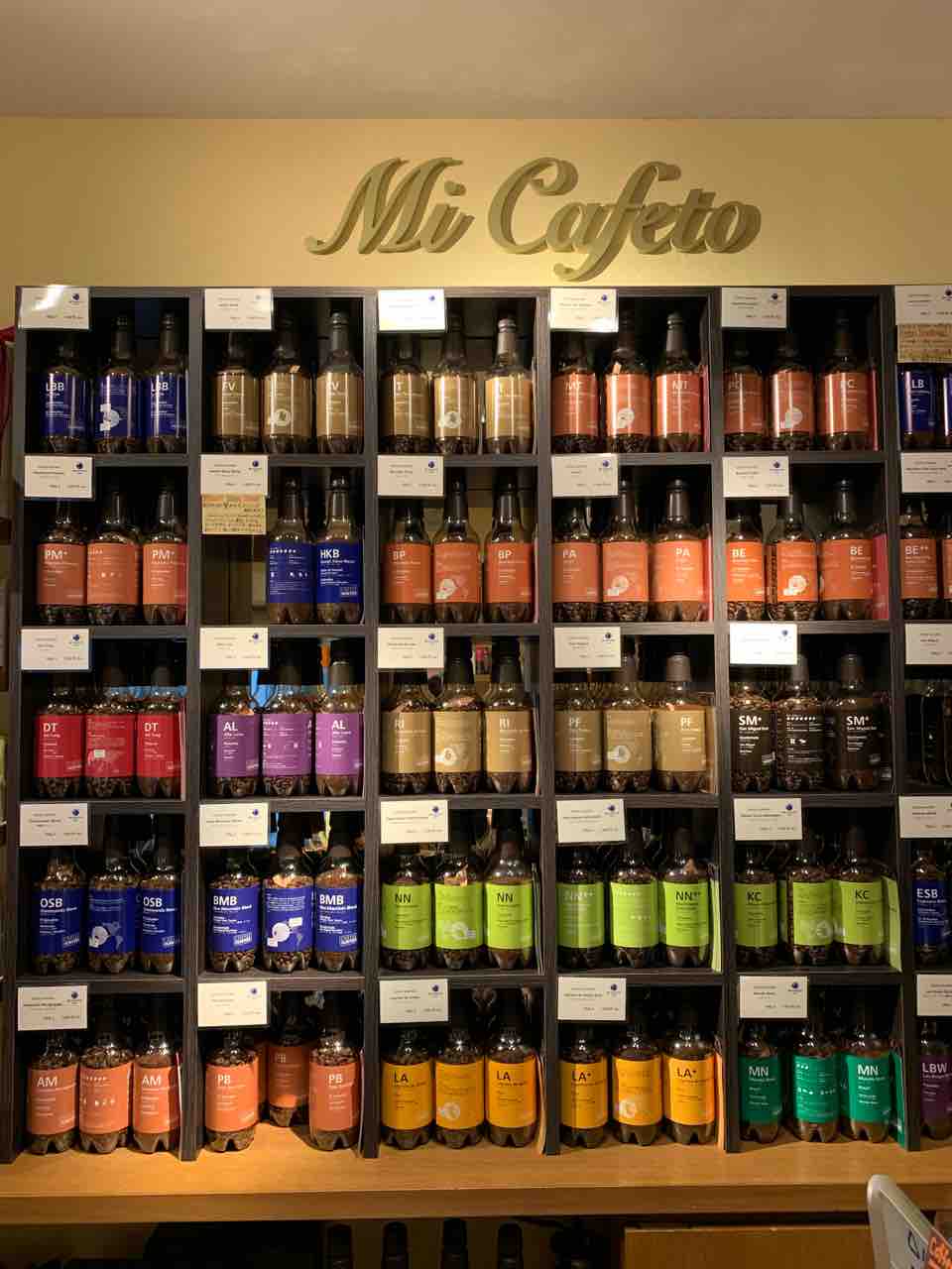 スペシャルティコーヒー屋さん「ミカフェート」にも行きました。ボトル入りのコーヒー豆が個性的なお店でした!