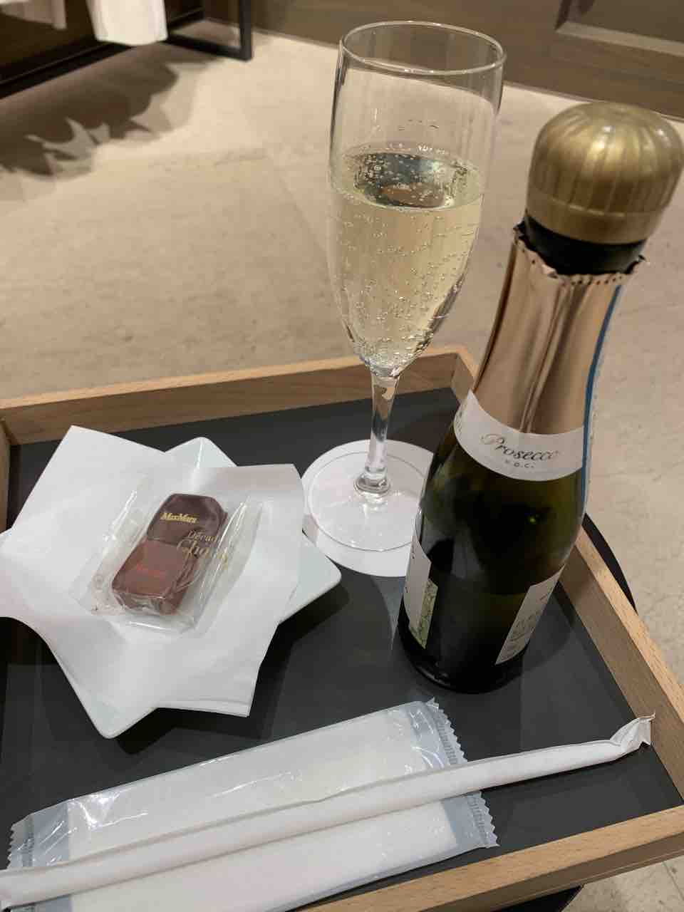 MaxMaraでは、スパークリングワインとボンボンショコラをご馳走になりました。
