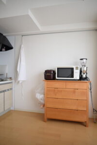 厳密には、時計は直径5センチくらいの小さなものを冷蔵庫の横にマグネットで貼り付けているけど、壁に穴を開けてわざわざ大きな時計を吊り下げたり、大きな置き時計を置いたりはしていません。