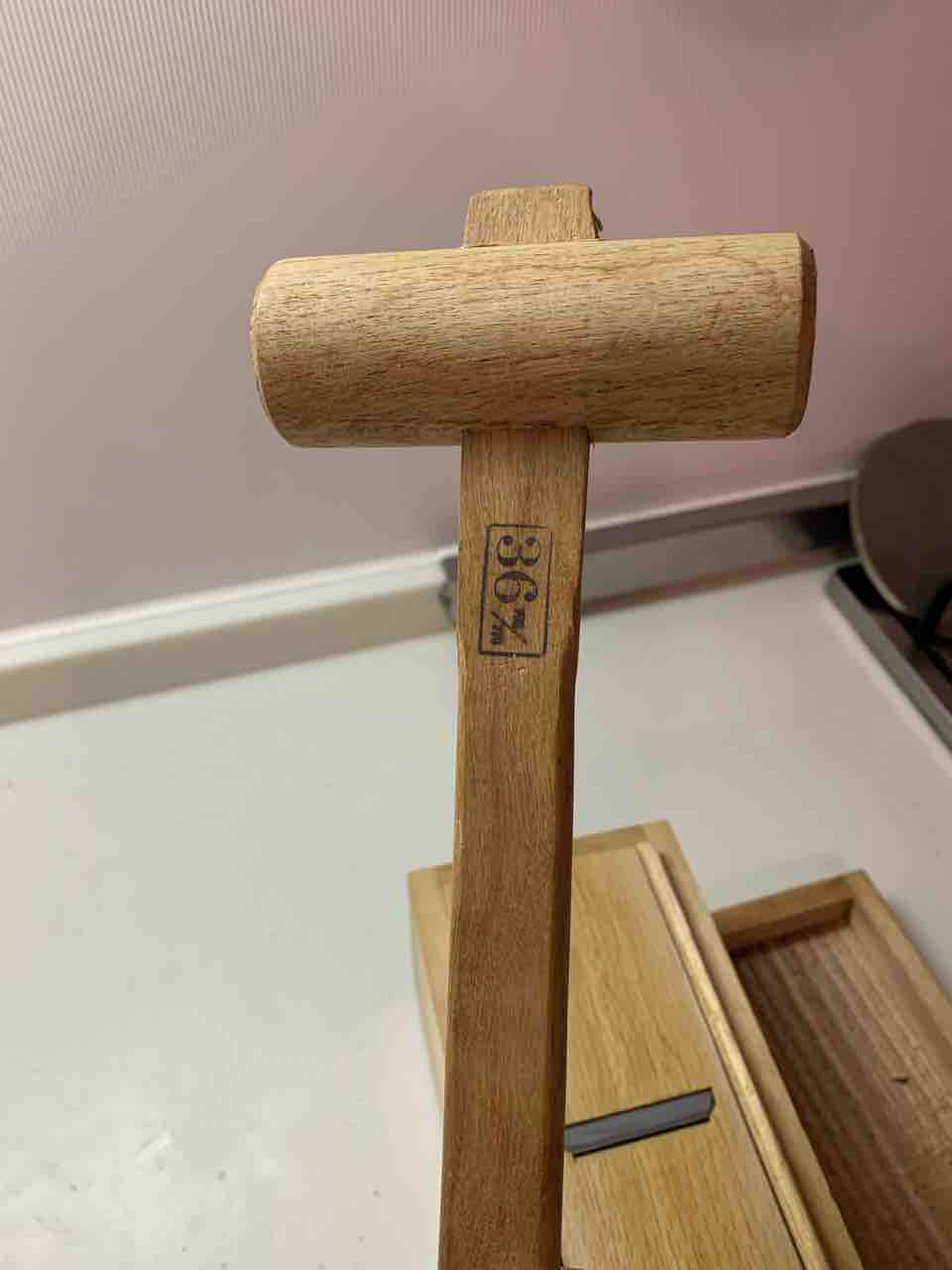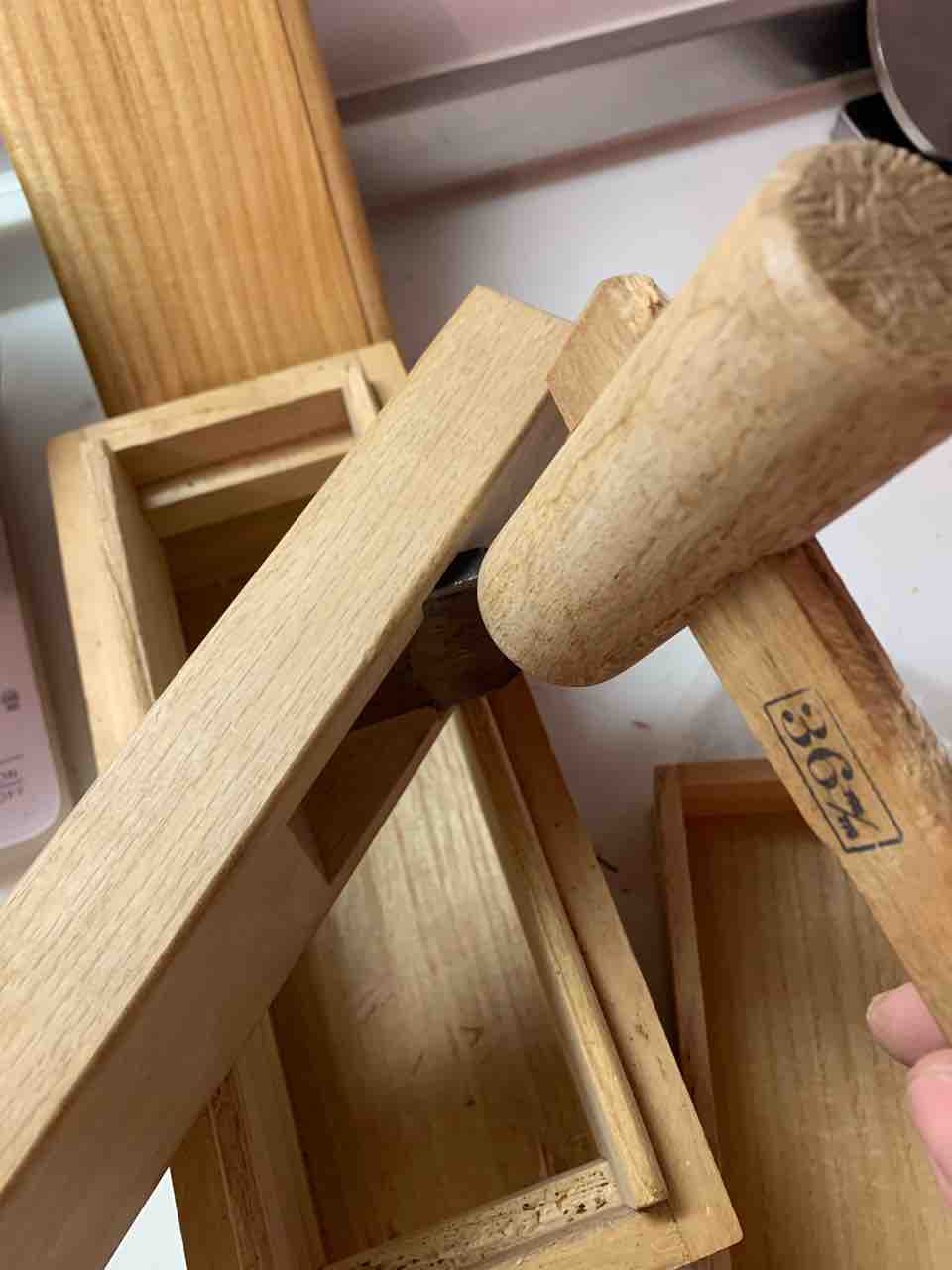 木槌はこのようなものですが、無ければ別に玄能(いわゆるカナヅチ)で叩いちゃっても何の問題もありません。