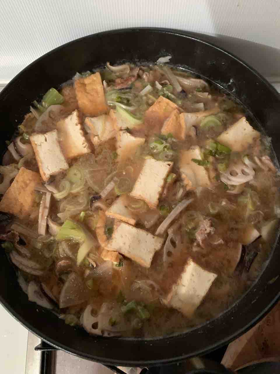 豚肉、厚揚げ、大根、大根葉、椎茸、蓮根 で豚汁も作りました。