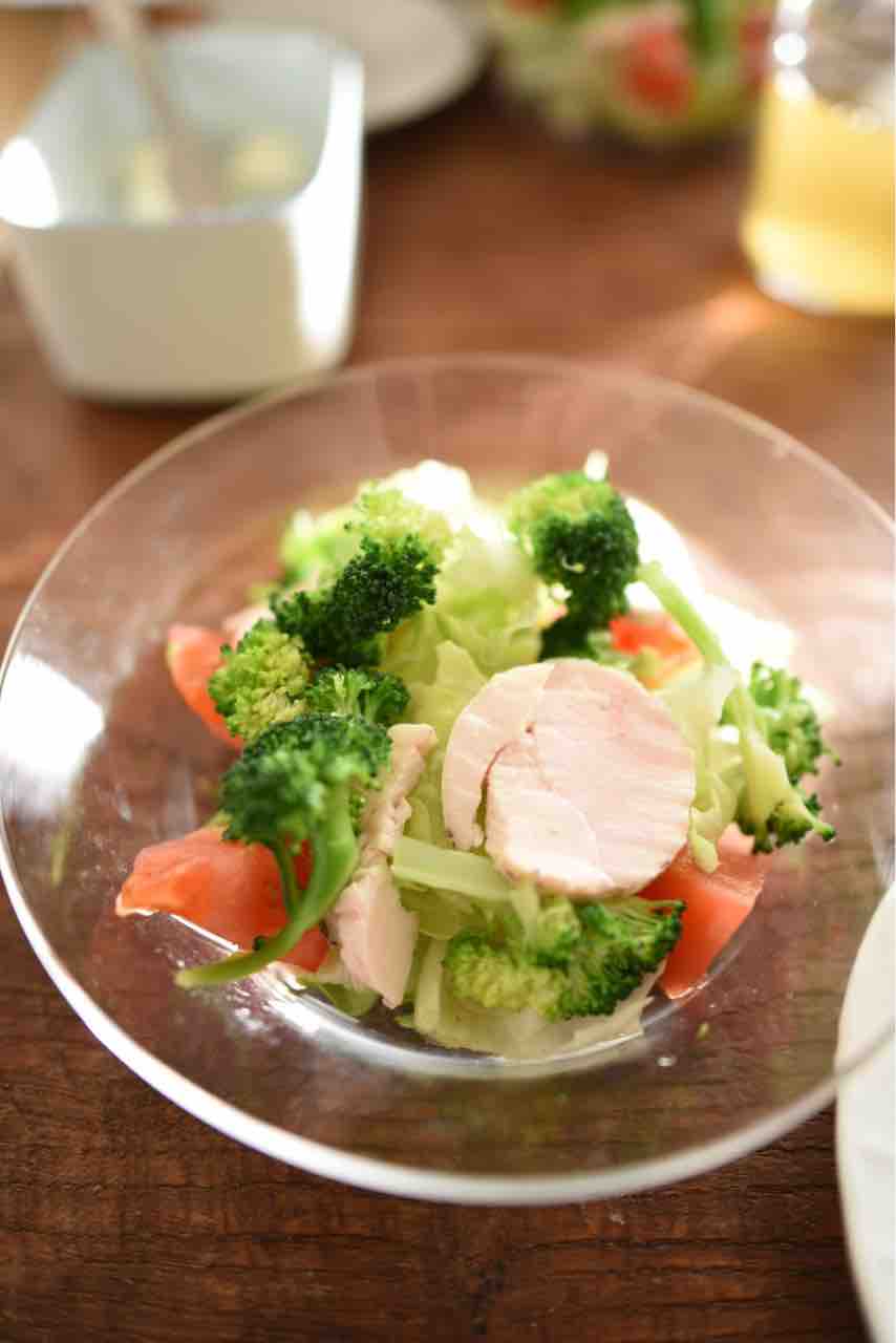 鶏ハム、レタス、ブロッコリー、トマト でサラダも作りました。