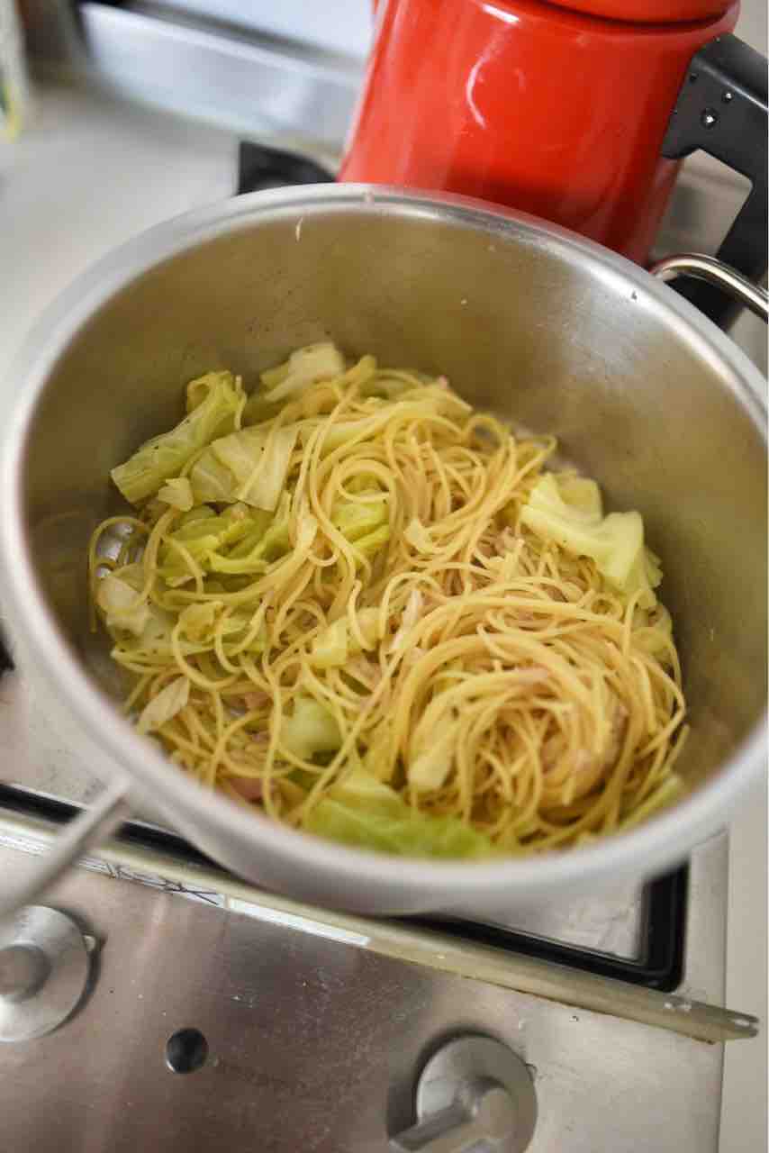 実際に作って食べて感激し、これまでなんの疑問を持たずに鍋2つを使って「パスタは面倒だ。」となんとなく思いながら生きてきたことに恥じ入りました。