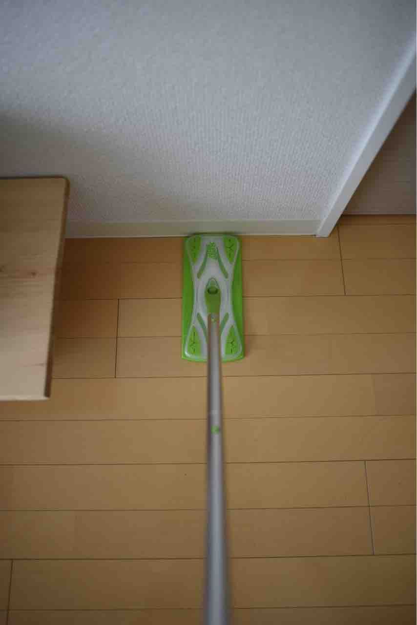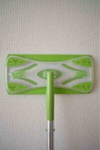 ヘッドが回転するので、縦向きにすると狭いところも掃除できて便利です。写真では何もつけていませんが、掃除する時にはマイクロファイバークロスのぞうきんをつけます。