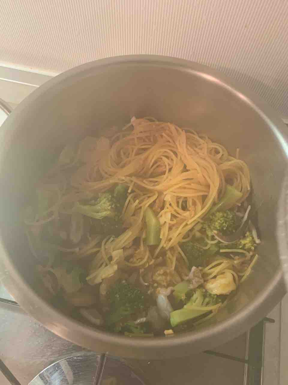 もちろん、「鍋ひとつで作るパスタ」も絶好調!でした。私は低糖質パスタ「ポポロスパ カーボフ」を1人前50グラムだけ使って作ります。これだと糖質量がわずか15グラムですみます。