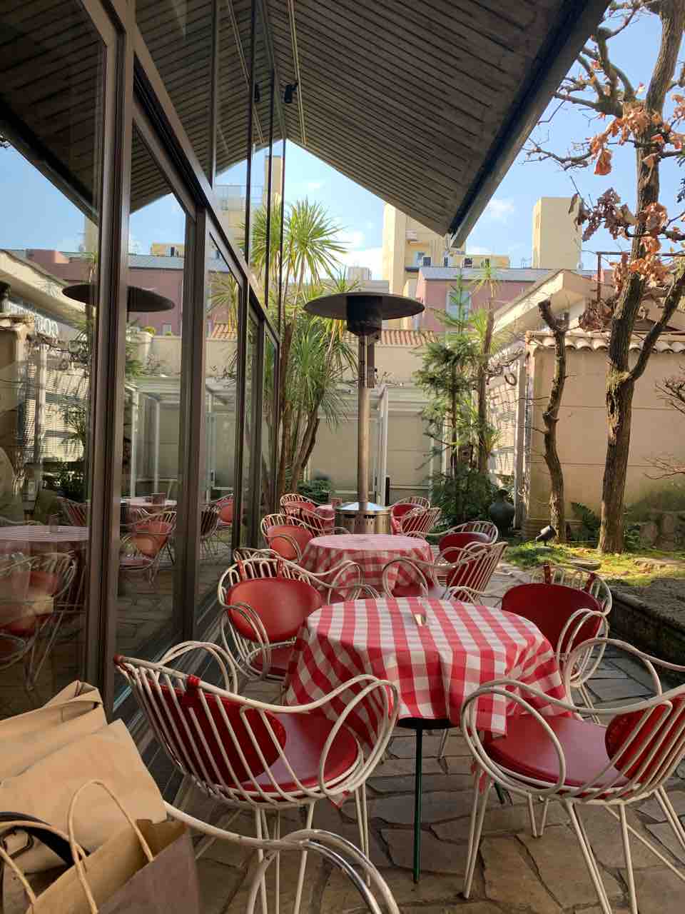 この日は暖かかったので、ストーブを付けてもらい、テラス席に座りました。