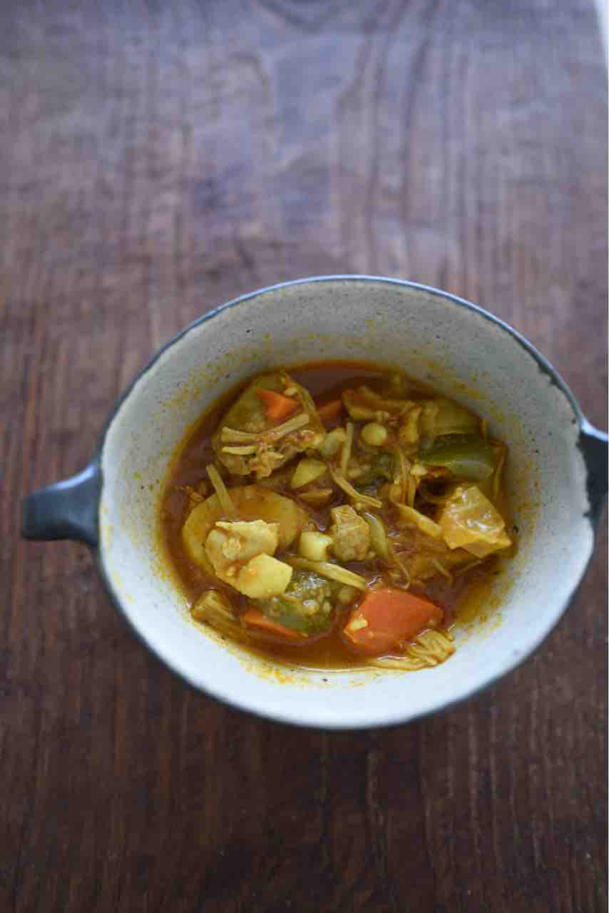 鶏もも肉、大根、玉ねぎ、人参、じゃがいも、ピーマン、えのきだけ でチキンカレーも作りました。例によって、マイクロプレインのマルチスパイスミルでオリジナルミックススパイスを挽き入れたので、香り高くて絶品でした。