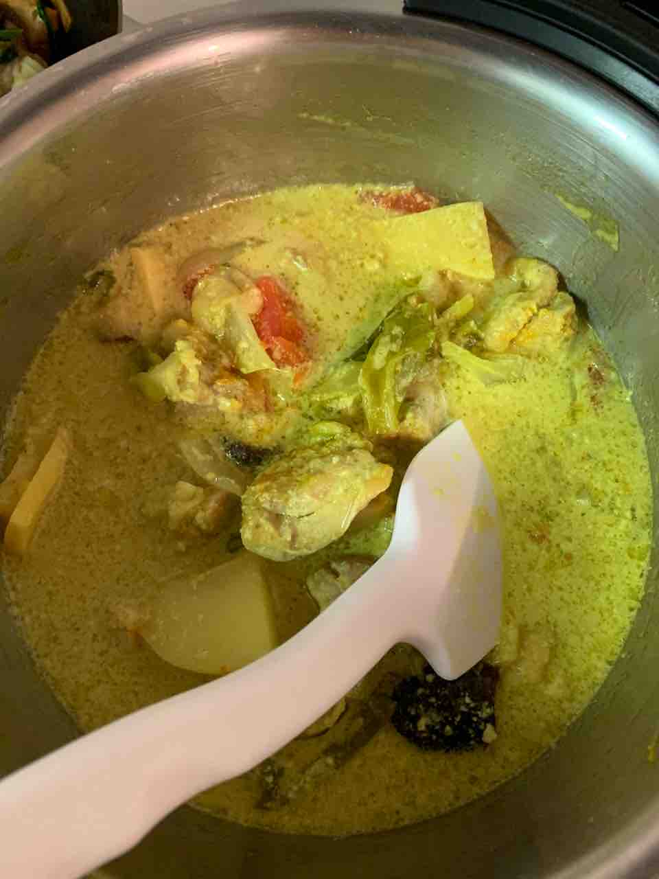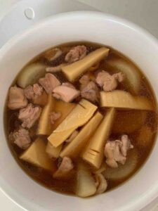 次に、筍、ピーマン、長ねぎ、椎茸、ミニトマト、玉ねぎ、じゃがいも、鶏もも肉 でグリーンカレーも作りました。グリーンカレーは、筍の季節の定番料理となりました。