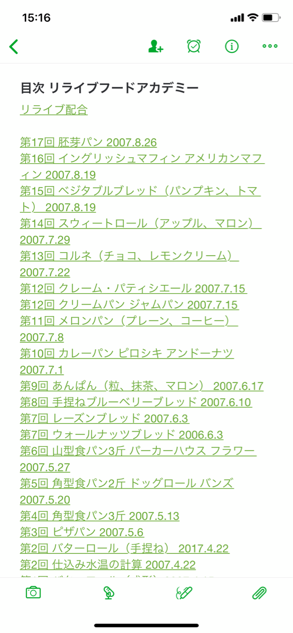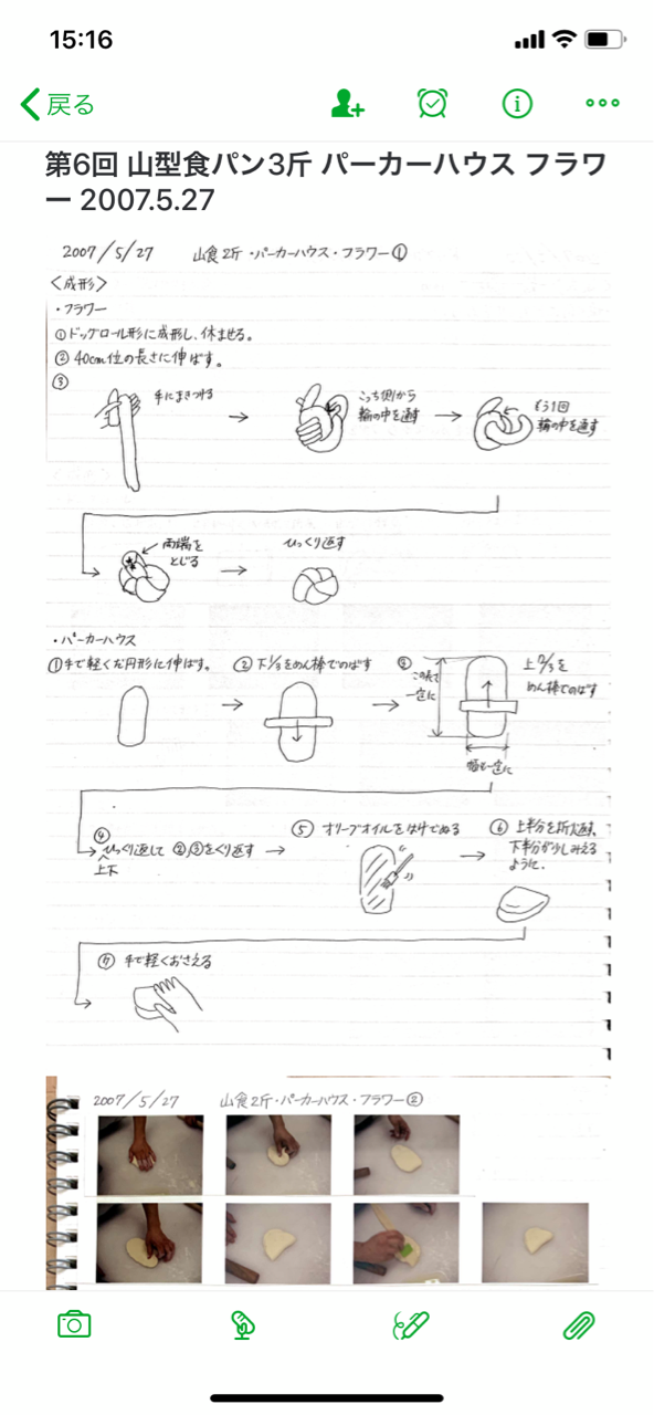 Evernote(個人型データベースシステム)を活用して、パン学校で習った一連の講義をひとまとめにして見やすく整理しました。