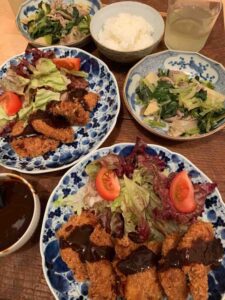 豚肉、キャベツ、ニラ、舞茸、長葱、生姜 で餃子も作りました。これは息子がほとんど全部手伝ってくれました。