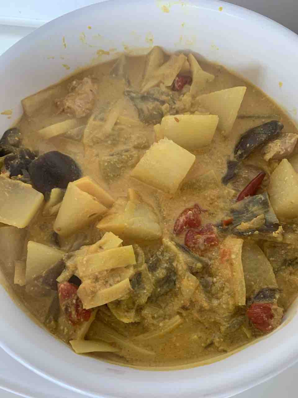 そして、鶏もも肉、筍、茄子、大根、舞茸、長葱 でグリーンカレーを作りました。