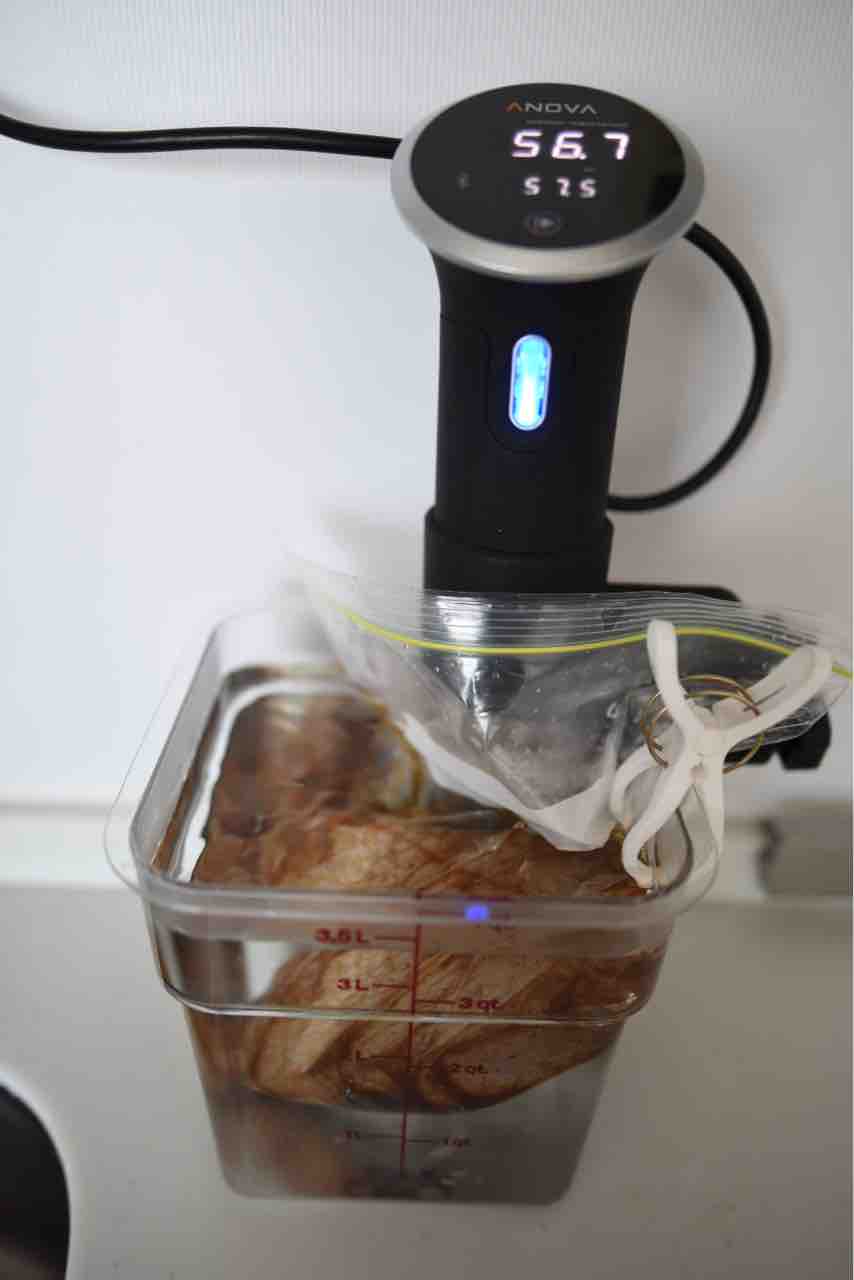 黒毛和牛A5ももブロックで、ローストビーフも作りました。ANOVA Precision Cooker で57.5度5時間の真空低温調理をしました。