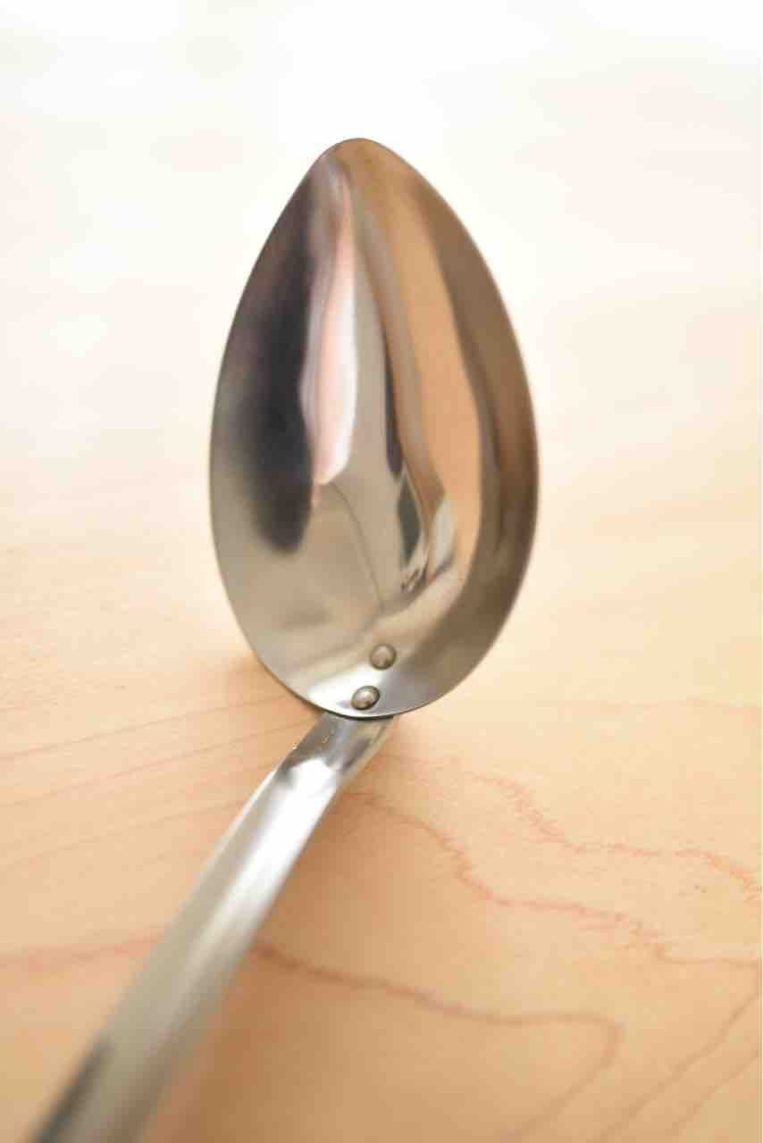 先細りの形状のため、お玉だとできなかったような細かい仕事ができるから、すごく便利です。