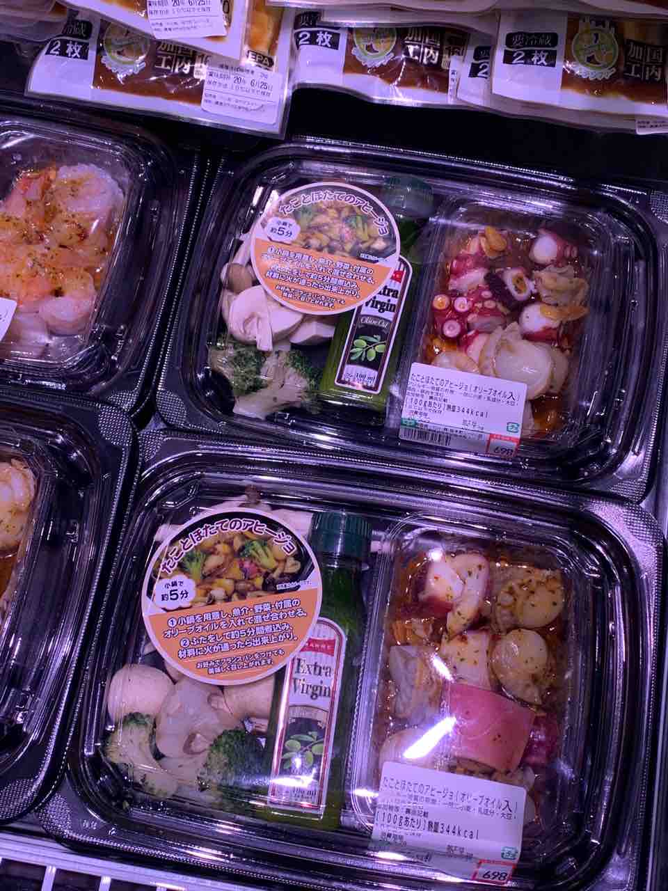 鮮魚のコーナーにはアヒージョセットが売られていたりと、買ってみたくなるような創意工夫がそこかしこに見られました。