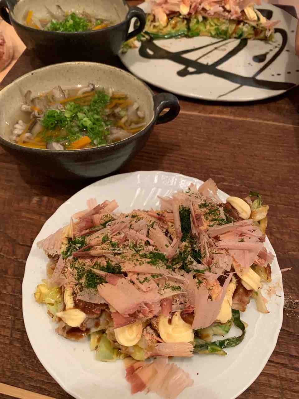 豚肉、キャベツ、葉葱 でお好み焼きも作りました。