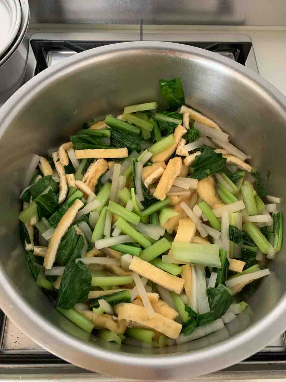 小松菜、大根、油揚げ で煮浸しも作りました。