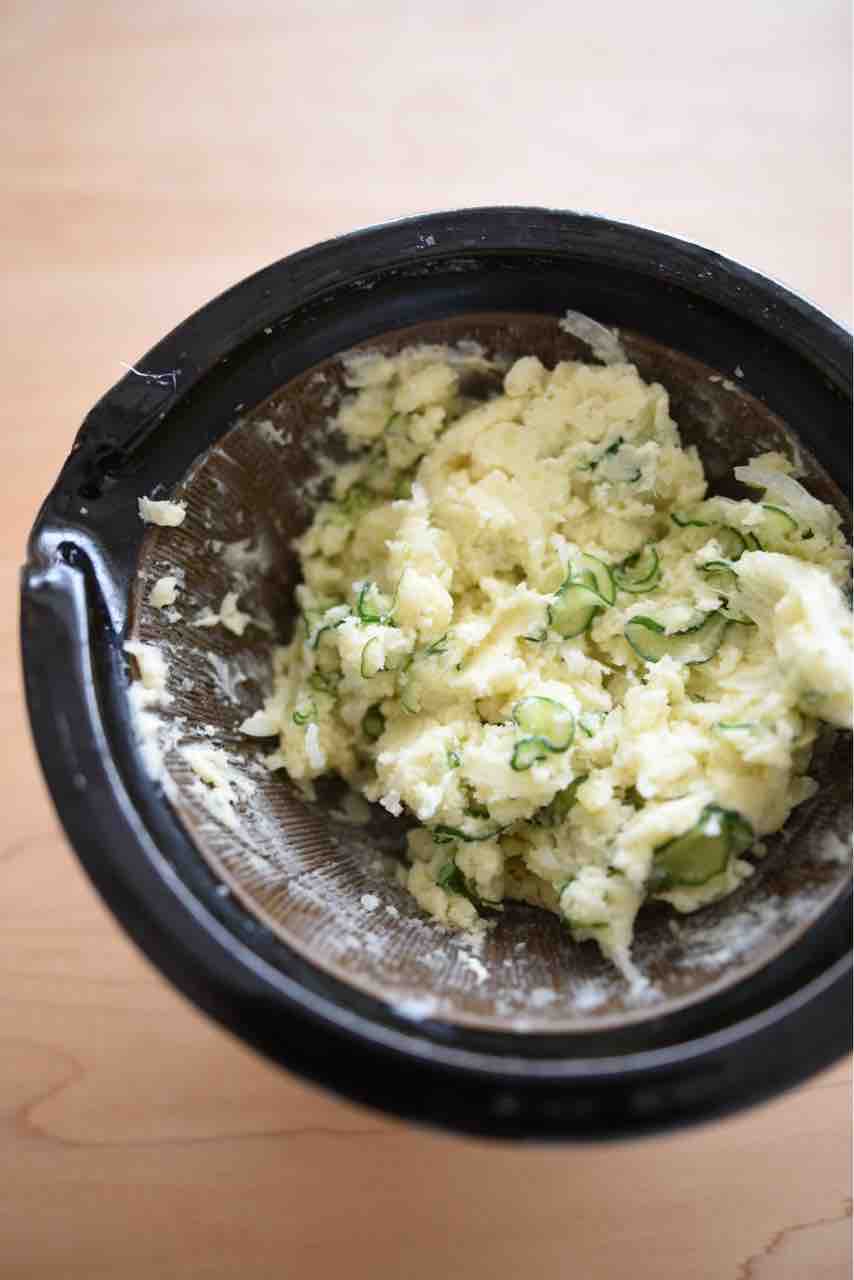ポテトサラダは、じゃがいも、きゅうり、玉ねぎ で作りました。