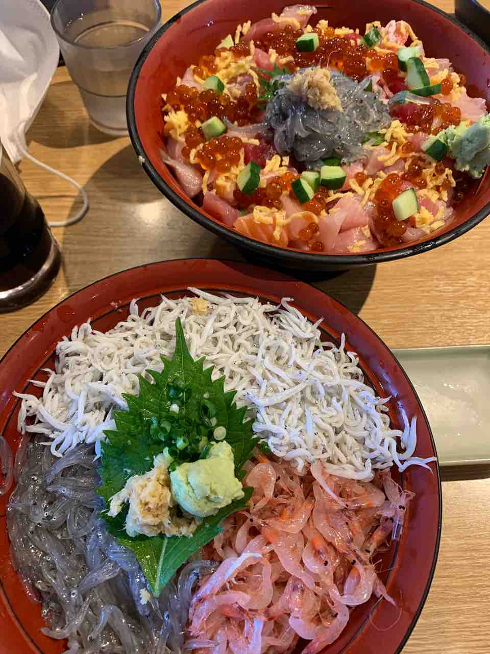 他にも、「魚河岸丸天」というお店もおいしかったです。こちらではやはり生桜海老ののっかった丼を食べました。お友達はいろんな魚がのっかった丼を食べていました。