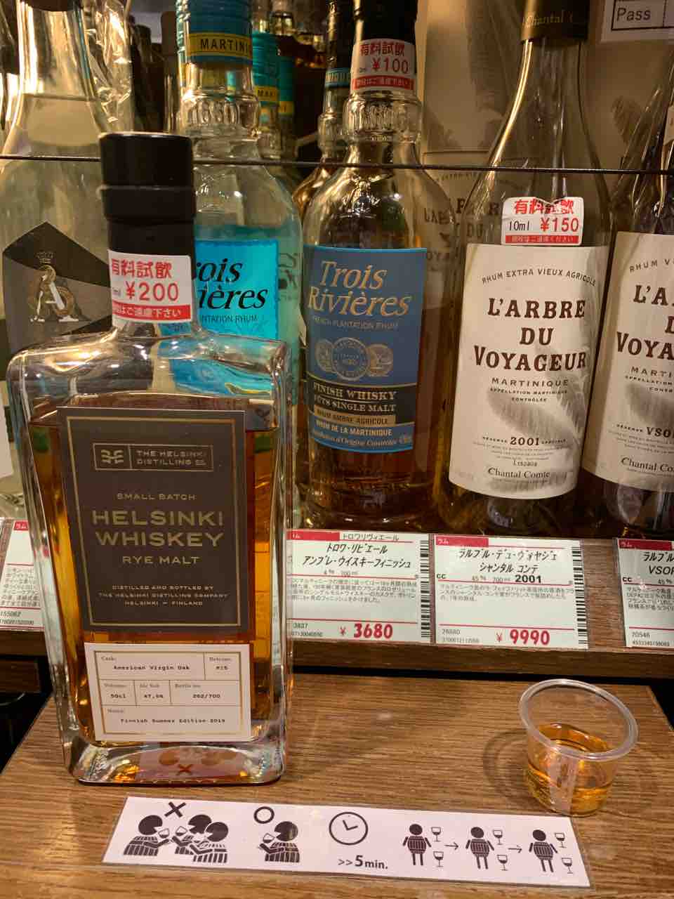 次に、ヘルシンキウイスキー。ライ麦が原料のライウイスキーですごく珍しいものです。ボトルデザインもかっこいいです。飲んでみると、ニューメイクのような穀物感がして、若く、いつものウィスキーとはまた違った味わいでした。