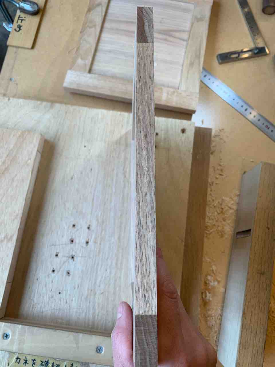 今回は、框組み(かまちぐみ)部材の小口部分の仕上げをしました。