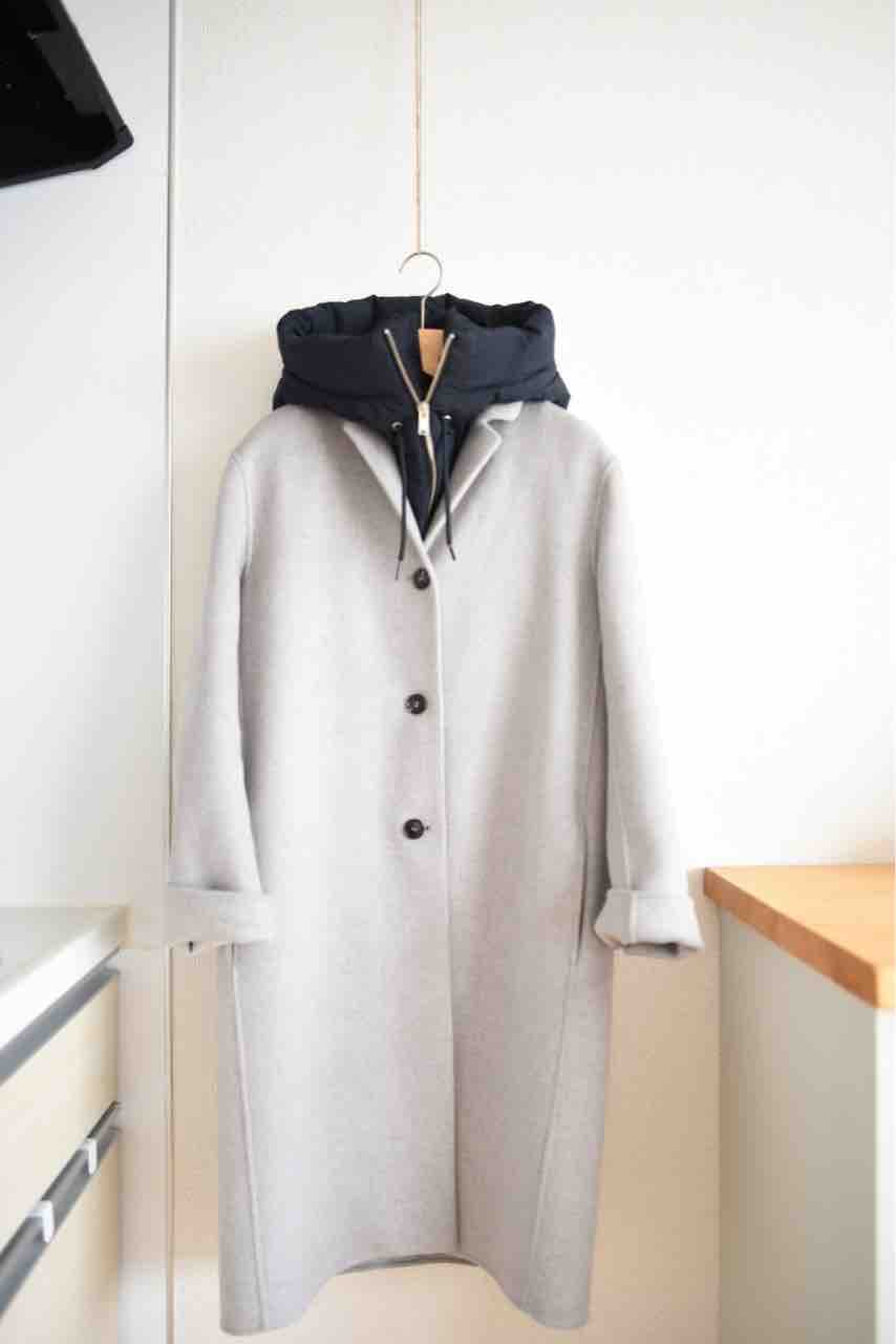 手持ちのクラシックなコートをカジュアルに着るため、フードのある服を重ね着したいと考えていました。でもパーカーって正直、おばさんにはカジュアルすぎるので重ね着するだけのために買う気は起きませんでした。でも付け襟なら、どんな上着にも合わせられて腕周りが窮屈になったりせずスッキリと着られます。