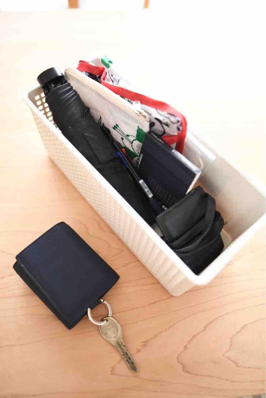 このように、お外に持って行くものを、その動線の最も端に1カ所にまとめることで、絶対に忘れ物をしないようにしています。